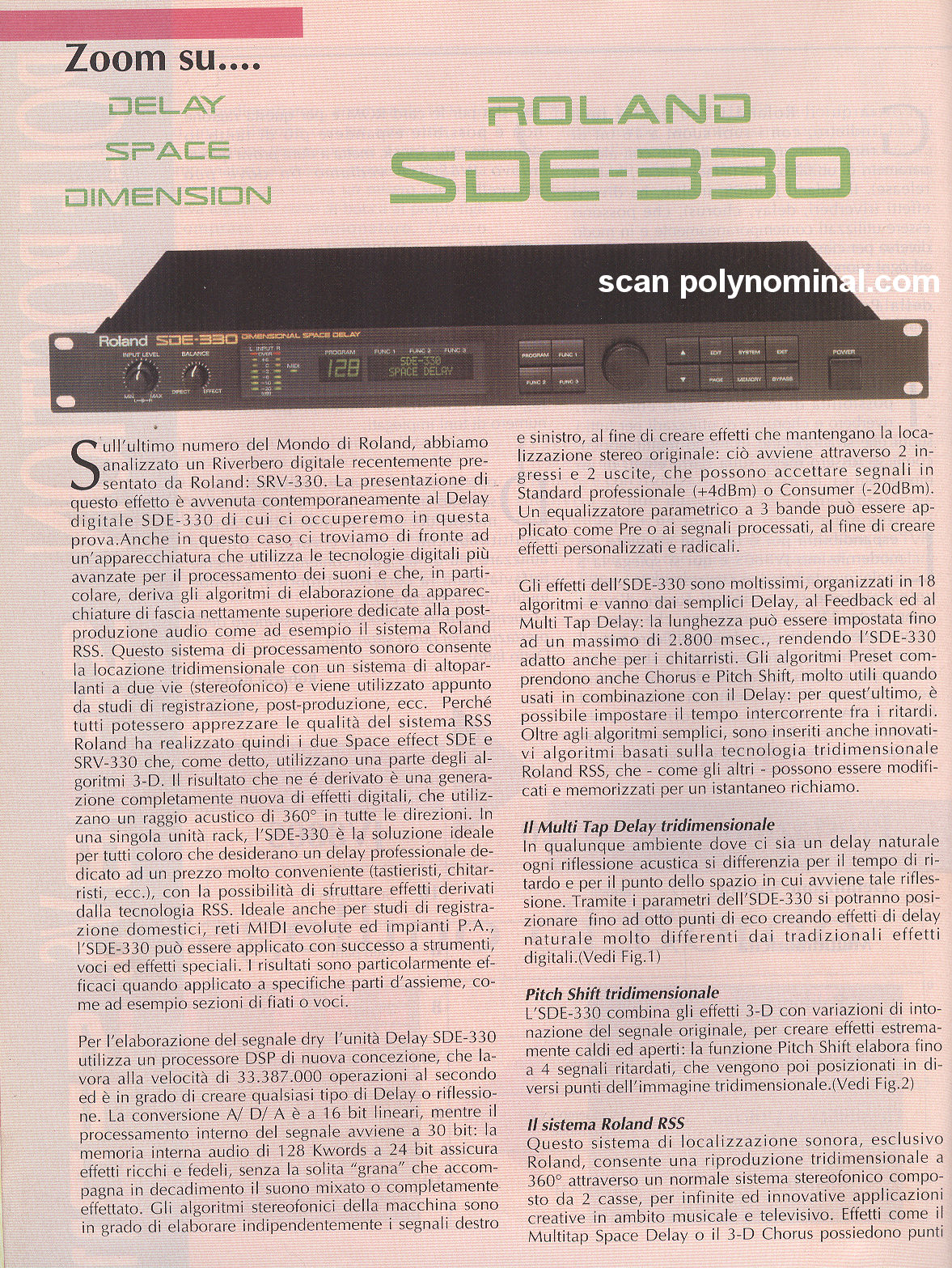 standard delay up to 2,8 seconds with RSS 3D effect+ modulation LFO (from 0,1 to 10 HZ shapes sinewave /triangle) + final EQ. Input channels are mixed to a single one.