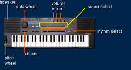 The internal ROM contains 20 cheesy style presets: rock (x2), beat (x4), disco (x2), pops (x2), swing, slow rock, samba, bossanova, waltz, march, beguine, salsa, reggae, and kraftwerk-style electro pop.