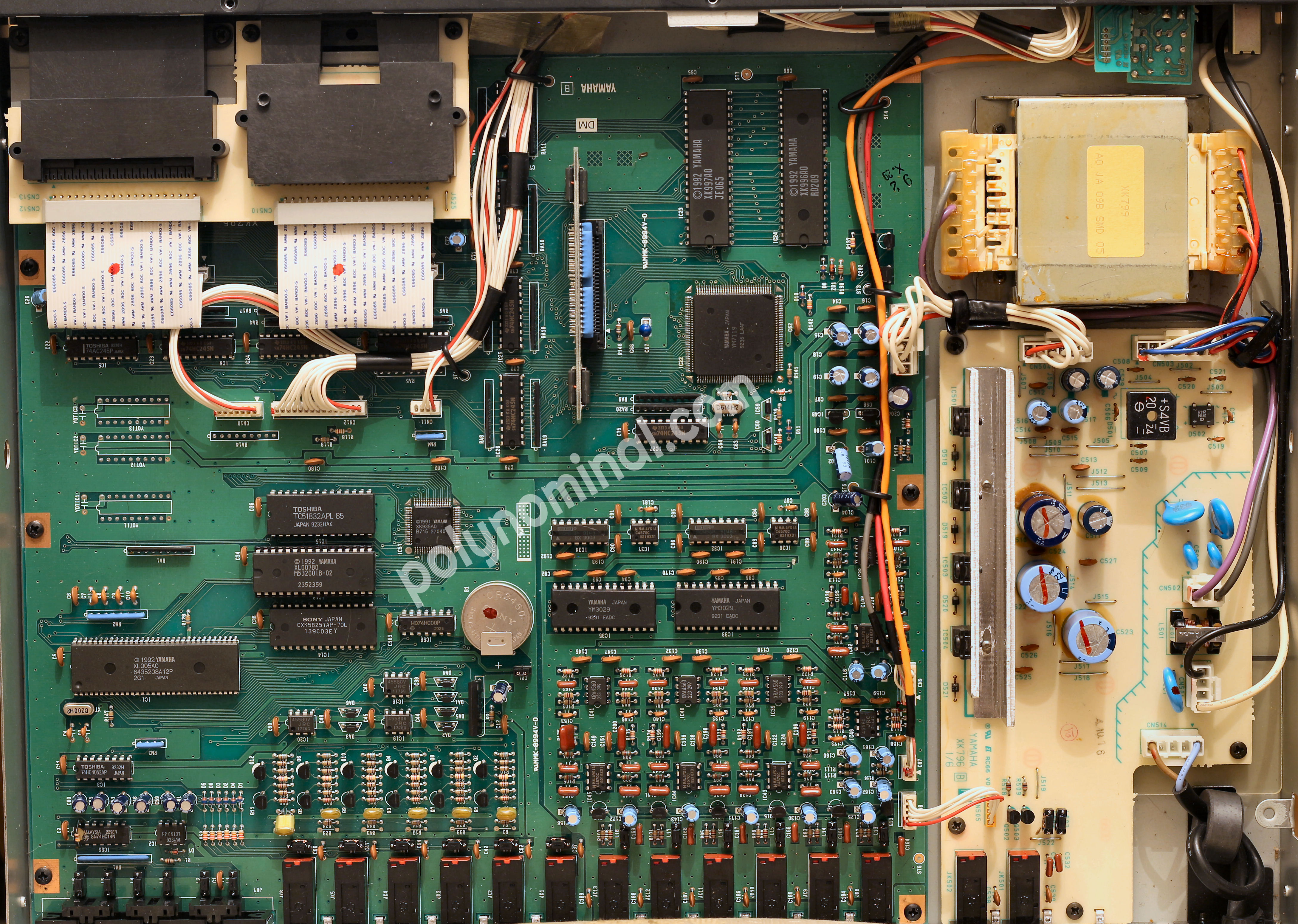 ■More sound can be loaded by the three card slots compatible with RY30 drum machine, but also cards for the Yamaha SY77 / 99 / 55. The fourth card slot is reserved for data cards, which expand the internal memory for sound programs and drum kits in case the 500 presets and 128 user voices as well as the 64 preset and 64 user drum kits (Extra ram cards store one or two sets of 64 kits to a RAM data card MCD-32 or MCD-64 respectively.